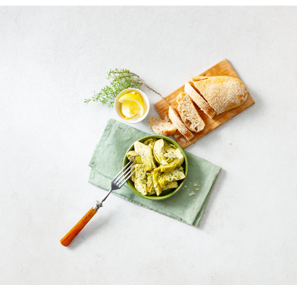 Schonende Verarbeitung Die Artischocken werden nicht totgekocht, sondern schonend blanchiert und anschließend kalt mariniert. Dadurch bleiben die knackige Konsistenz und der feine Eigengeschmack erhalten. Die Komposition aus Sonnenblumen- und Olivenöl sowie einem Spritzer Zitronensaft sorgt für eine harmonische Balance.